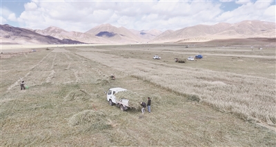 每年10月底至11月初,是人工草场的丰收季节。10月24日,记者在强聂村和达琼村看到,连片的燕麦草随风起伏,宛如金绿交织的草浪。牧民们抓住晴好天气,使用收割机在草场忙碌作业,收割和转运工作有条不紊。据悉,全部收割任务预计在十余天内完成,将为牲畜越冬备足“口粮”。