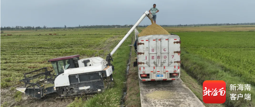 “今年受台风影响以后,文昌市农业农村局还有文昌市现代农业发展服务中心对我们提供帮扶,带药过来给水稻杀菌杀虫,冯坡镇政府还帮我们做排水和水沟清理。”海南睿超生态有限公司总经理吴飞介绍,他们在冯坡镇租赁土地2000多亩,此次收割的860余亩水稻是其中的一部分,将加快收割进度,确保颗粒归仓。